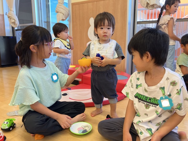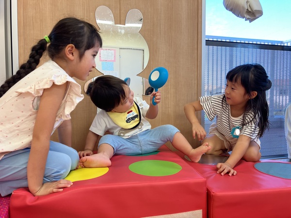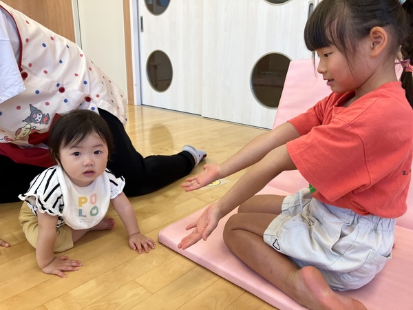 6日(月)1歳児ほし組は、0歳児はな組のお友だちと一緒に