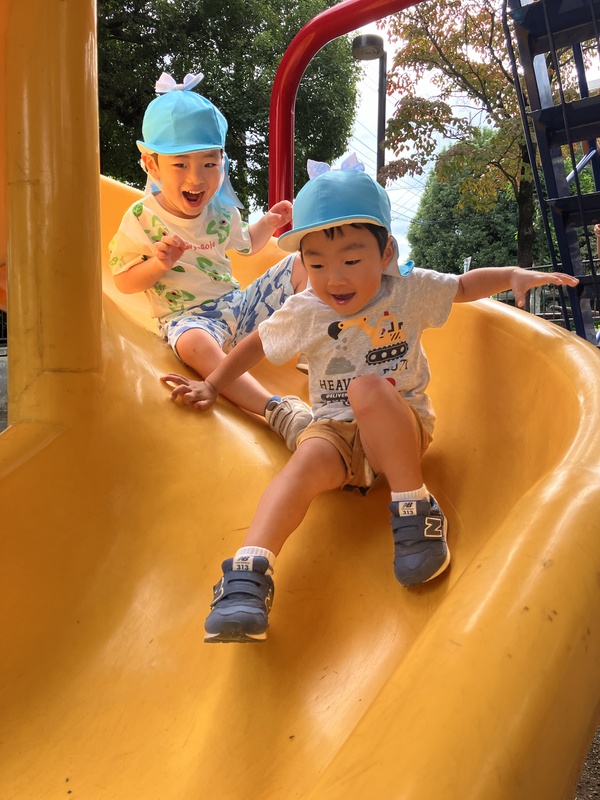 公園に着くとすぐに滑り台に走っていくゆき組のお友だち。