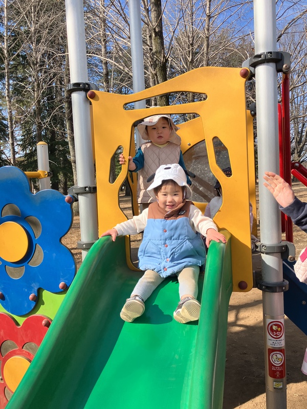 はな組のお友だちに丁度いい高さの滑り台があり、挑戦しました。