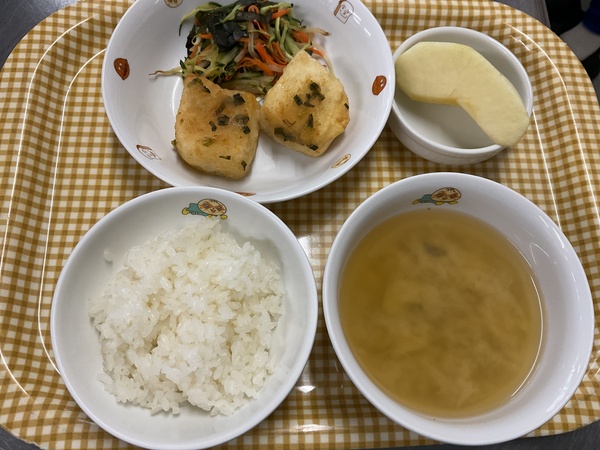 10日のお給食は、揚げ出し豆腐でした。