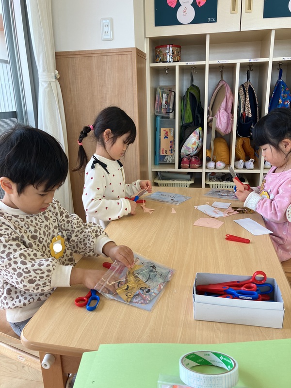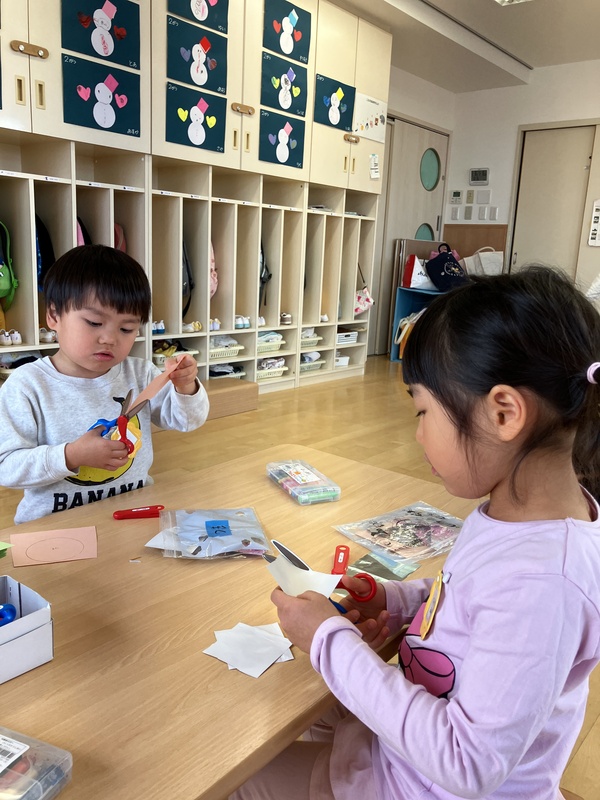 持ち方も上手になり、ハサミを使うのを楽しんでいました。
