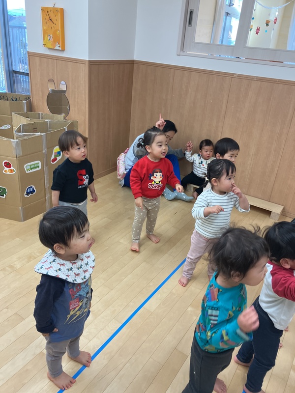 1歳児ほし組のお集りの様子です。