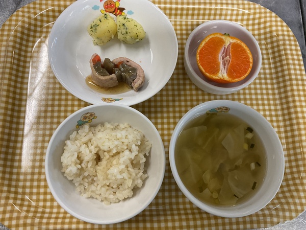 1日のお給食は、豆腐とえびのケチャップ煮でした。