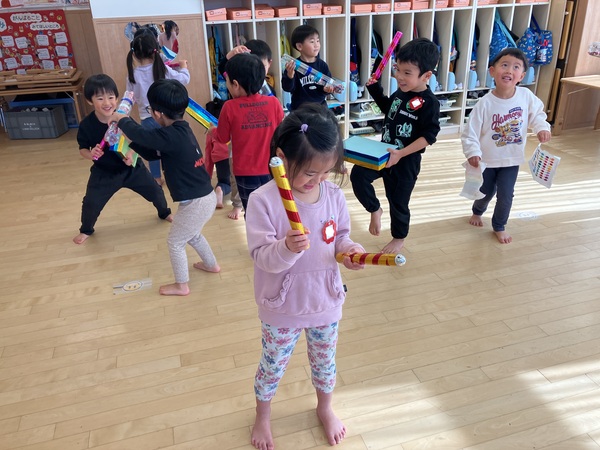 10日(水)4歳児にじ組は、楽器あそびをしました。