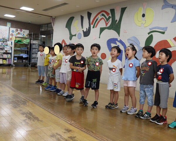 ちょっぴり恥ずかしそうに唄っていた子ども達です。