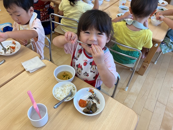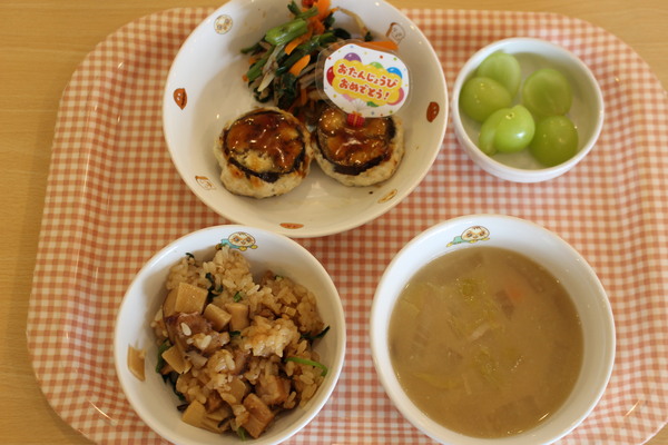 今月のお誕生会メニューは、旬の栗が入手困難になり