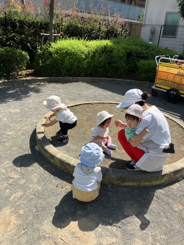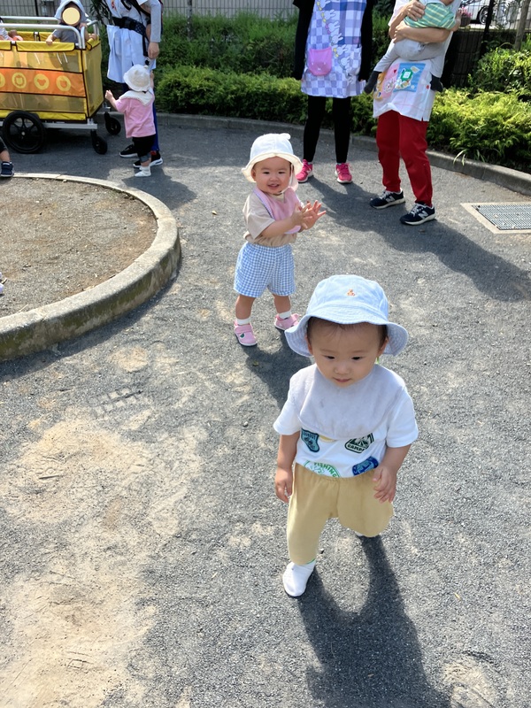 24日(水)0歳児はな組は、ゆめ組さんと近くを散歩しました。