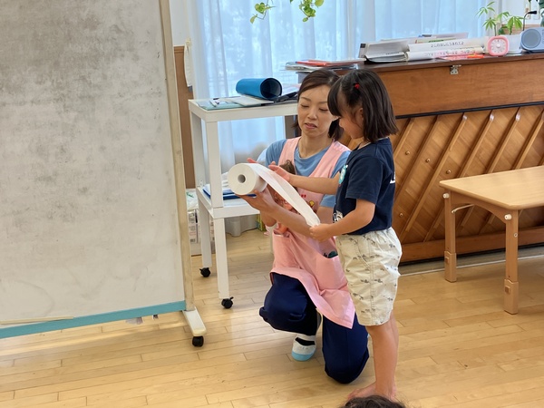 しゃがみ方やトイレットペーパーの使い方を練習しました!