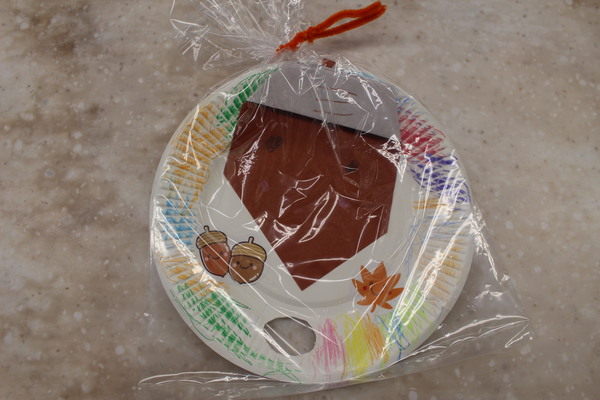 敬老の日に向けて作った「どんぐりのうちわ」を