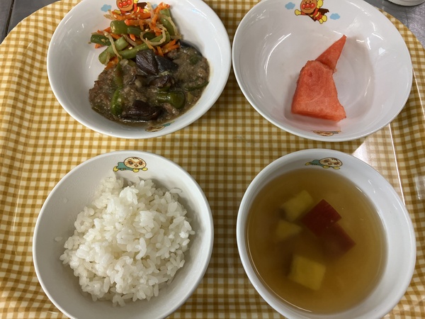 2日は、秋が旬のなすをたっぷり使ったマーボーナスでした。