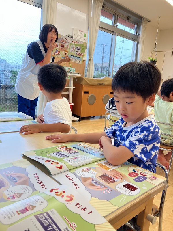 4日(木)4歳児にじ組は、キンダーブック9月号を読みました。