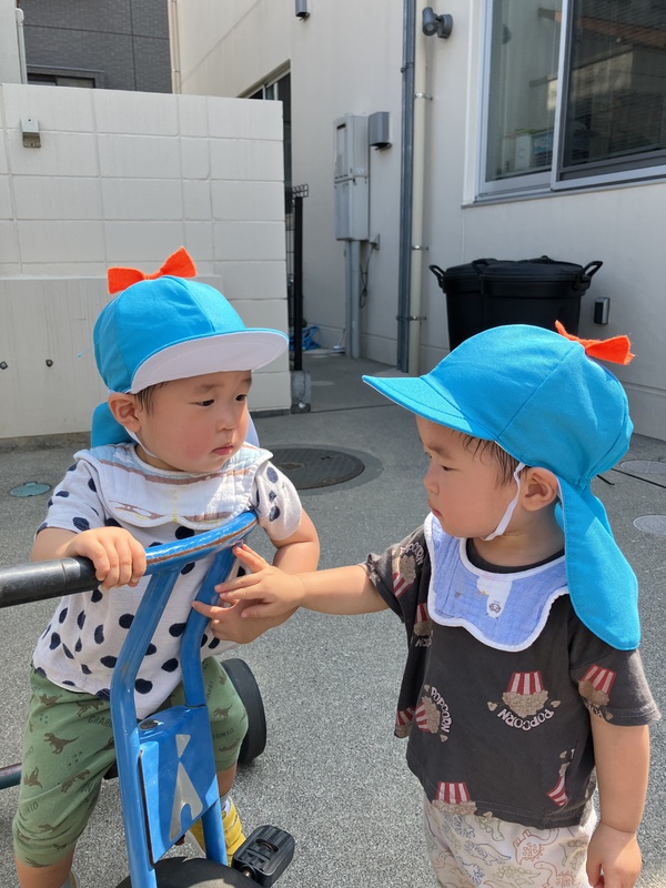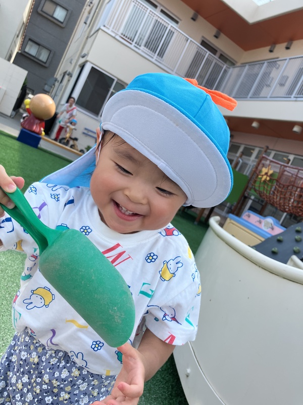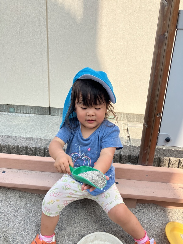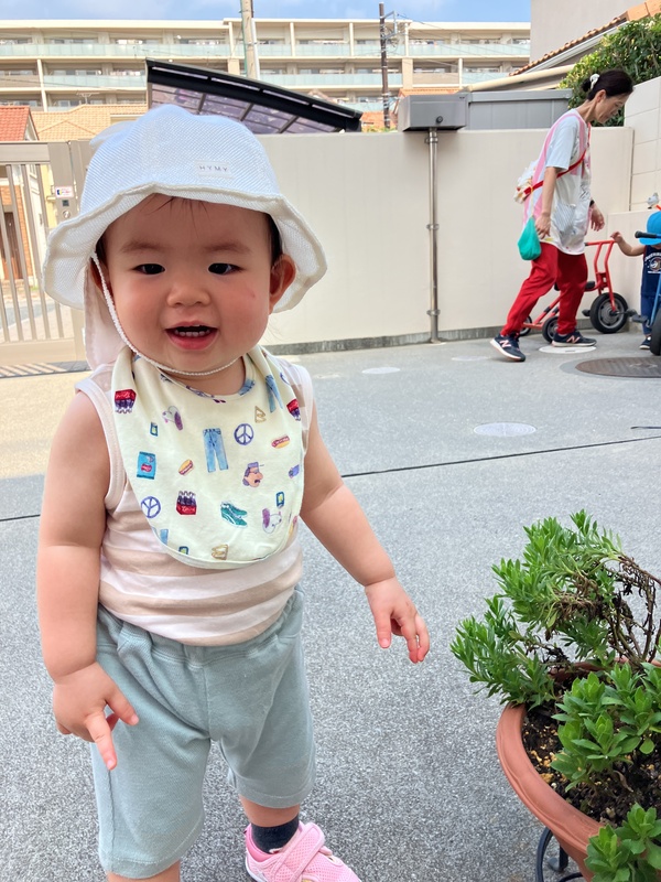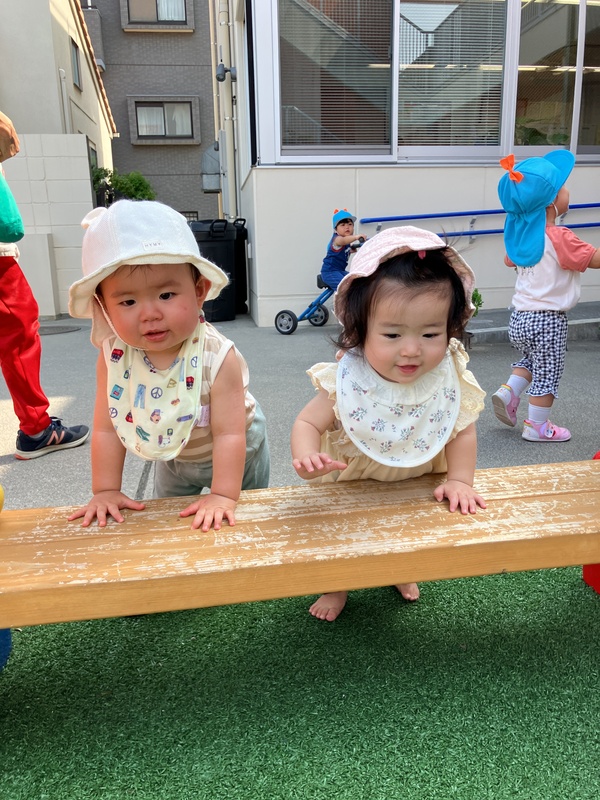 10日(水)0歳児はな組は、久しぶりに園庭で遊びました。