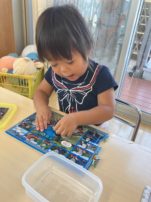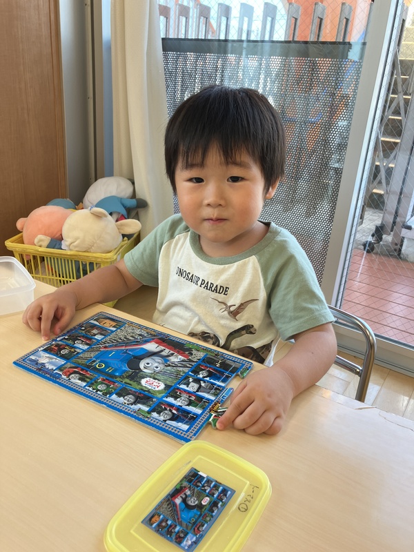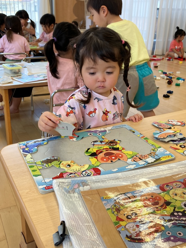 パズルで遊んでいる子がいました。