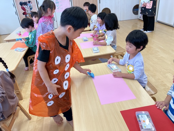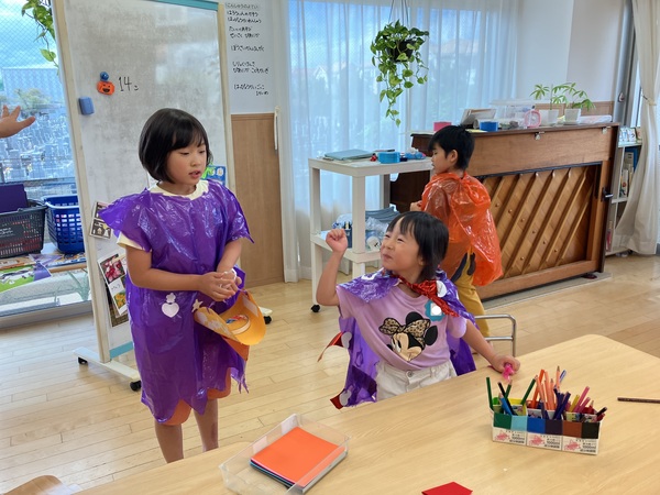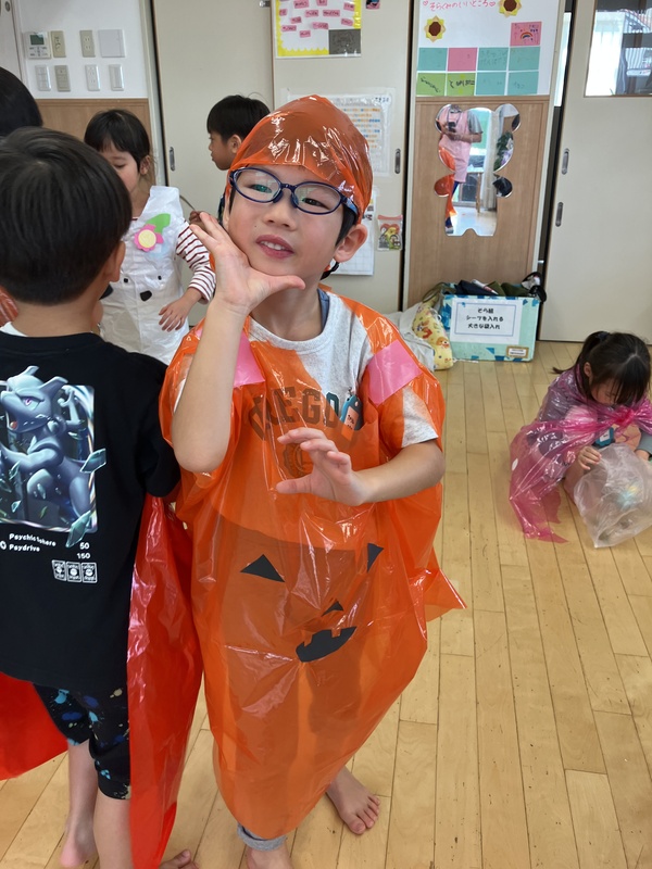 27日(月)5歳児そら組は、皆で作った衣装を着てハロウィンを行ないました。