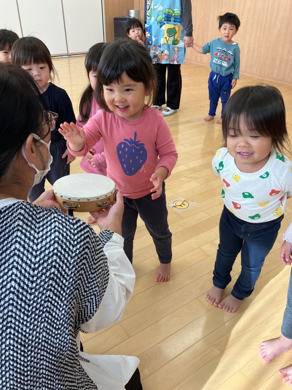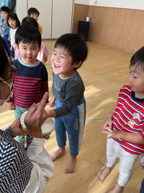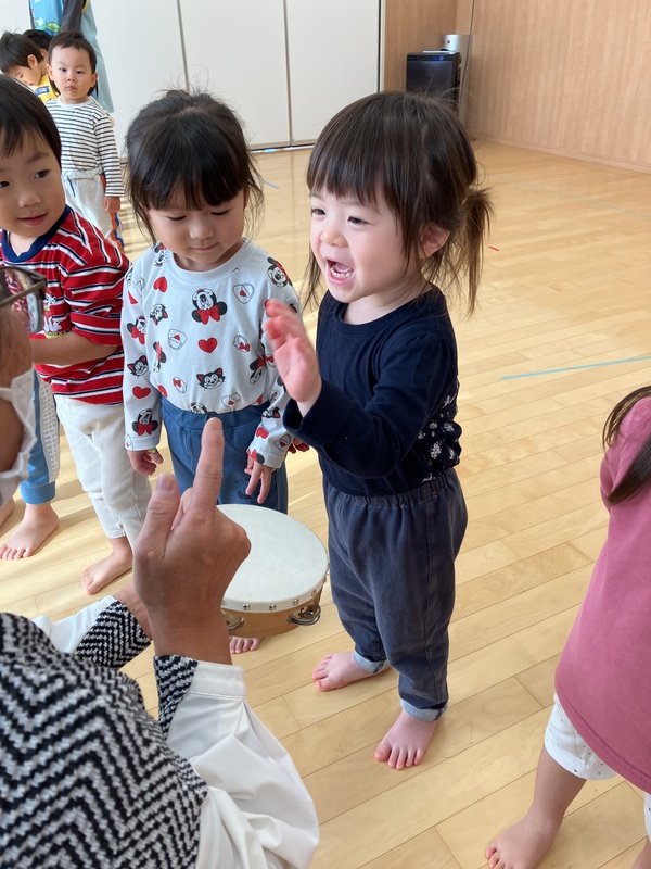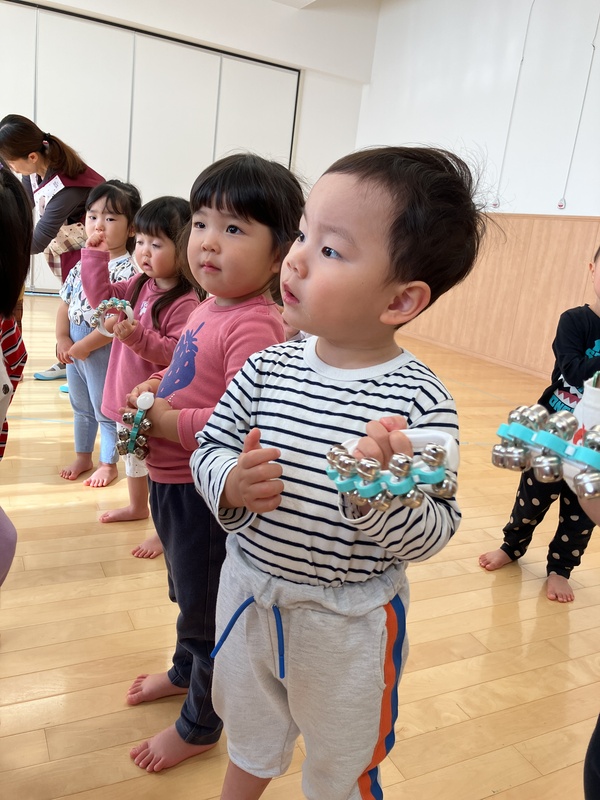 鈴を鳴らしたり、手をたたいてリズムをとることを楽しんでいました。