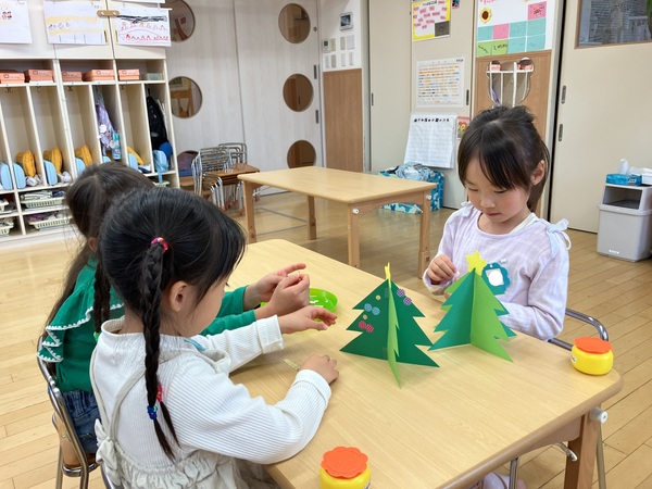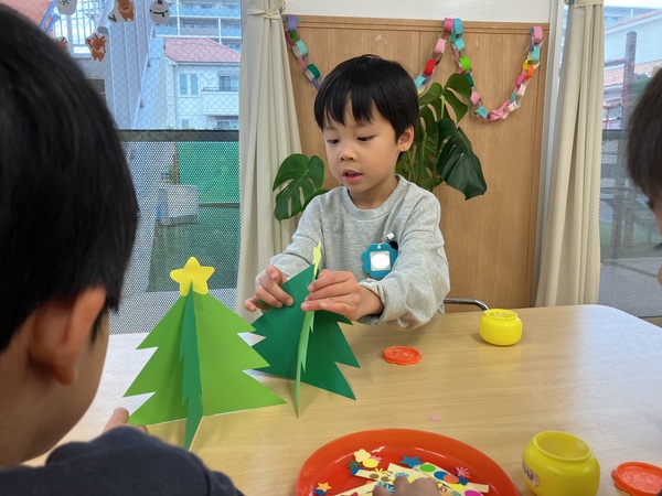 25日(木)5歳児そら組は、クリスマスツリーを作りました。
