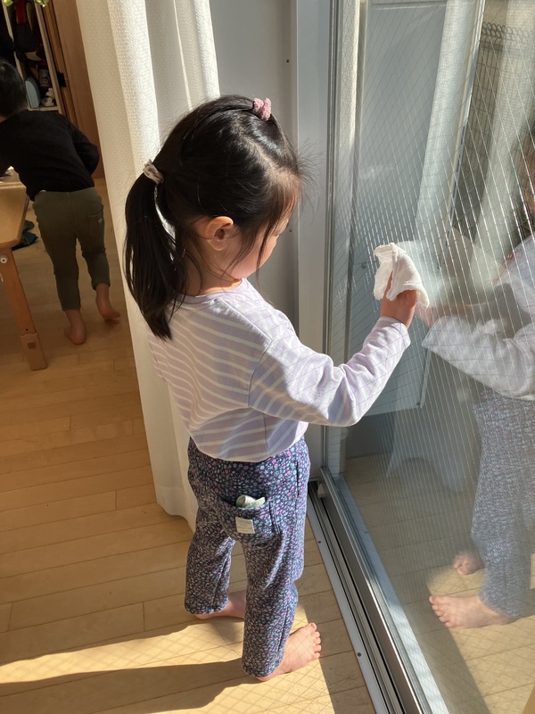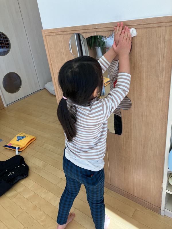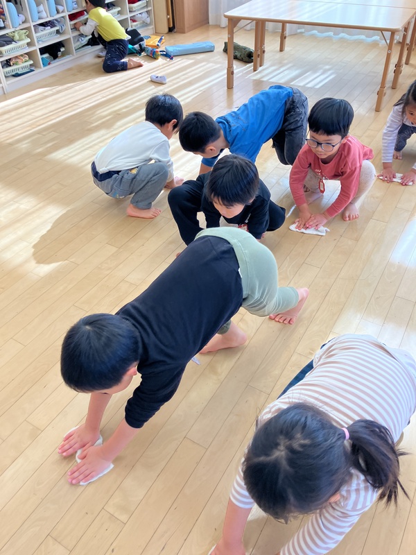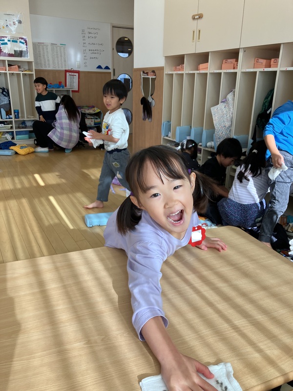 自分達で声を掛け合い、雑巾で拭いてくれました。