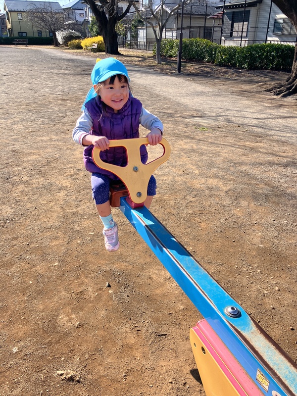 自由に歩くことが嬉しくて「あー!!」と声をあげて小走りする姿もありました。