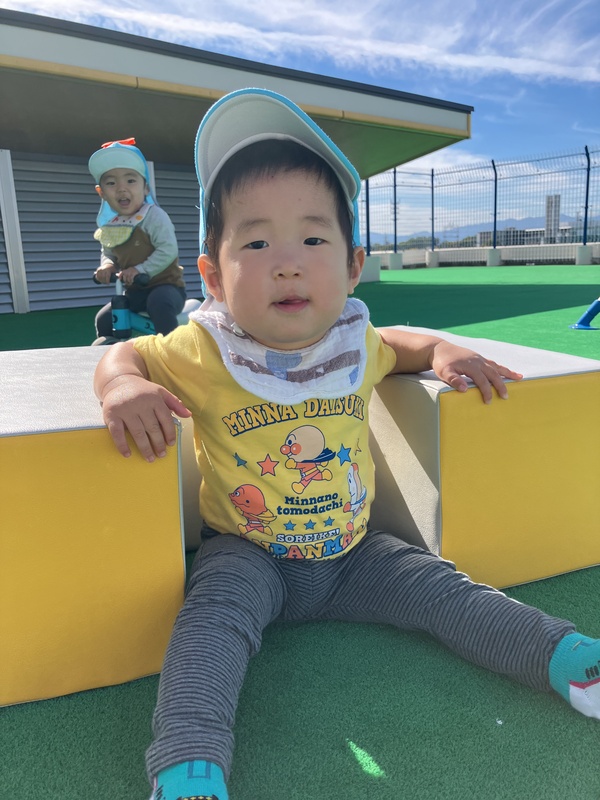 4日(火)1歳児ほし組は、屋上で遊びました。