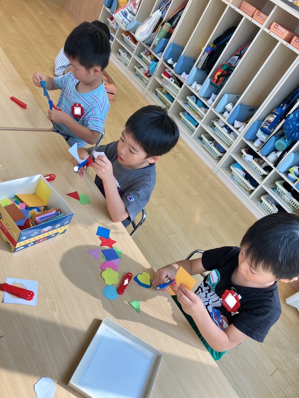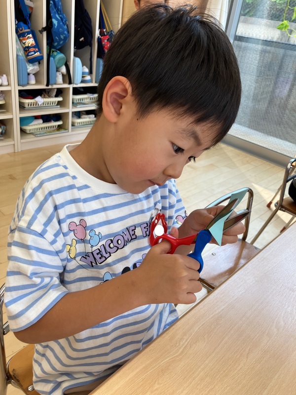22日(金)4歳児にじ組は、はさみの練習をしました。