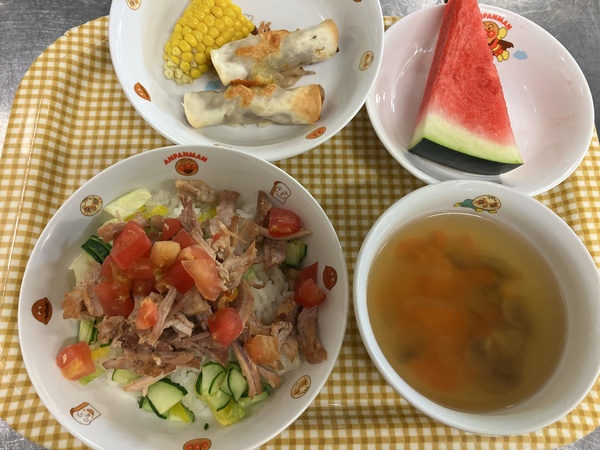 他にもニラ、モロヘイヤ、オクラとスタミナたっぷりの給食でした。