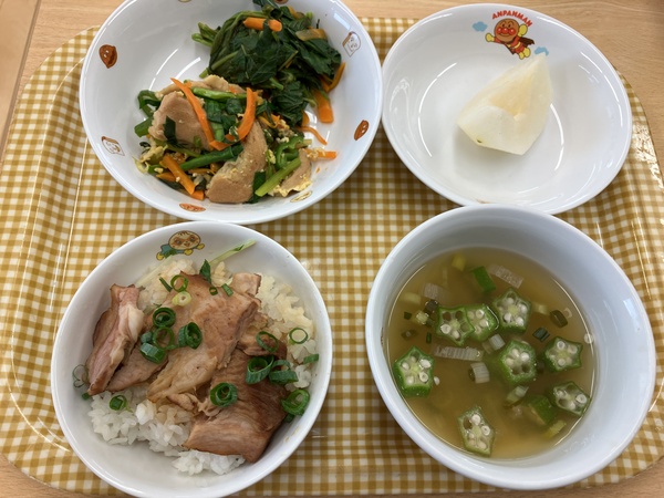 28日は職員のお家の味を参考にさせてもらい作ったチャーシュー丼でした。