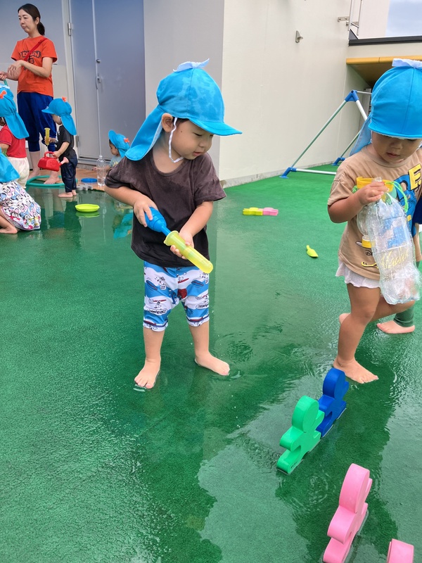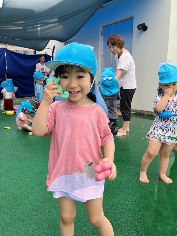 袋をぶんぶん振って色水の動く様子も楽しみました!